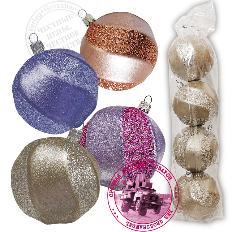 Елочные шары "Волна" Ø 80 mm, различные цвета, 4 шт. в упаковке