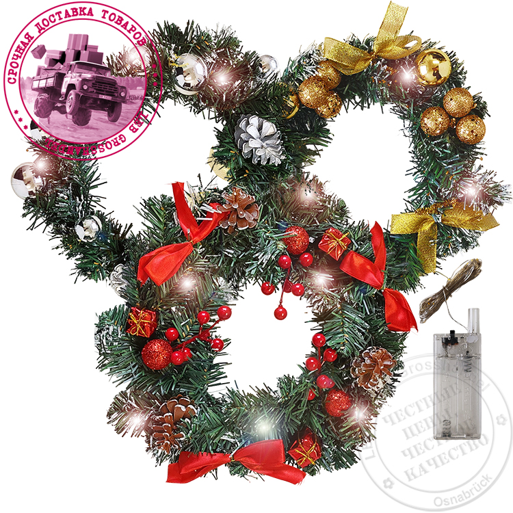 Венок новогодний с LED подсветкой, Ø ca.30 cm, цена за 1 шт.