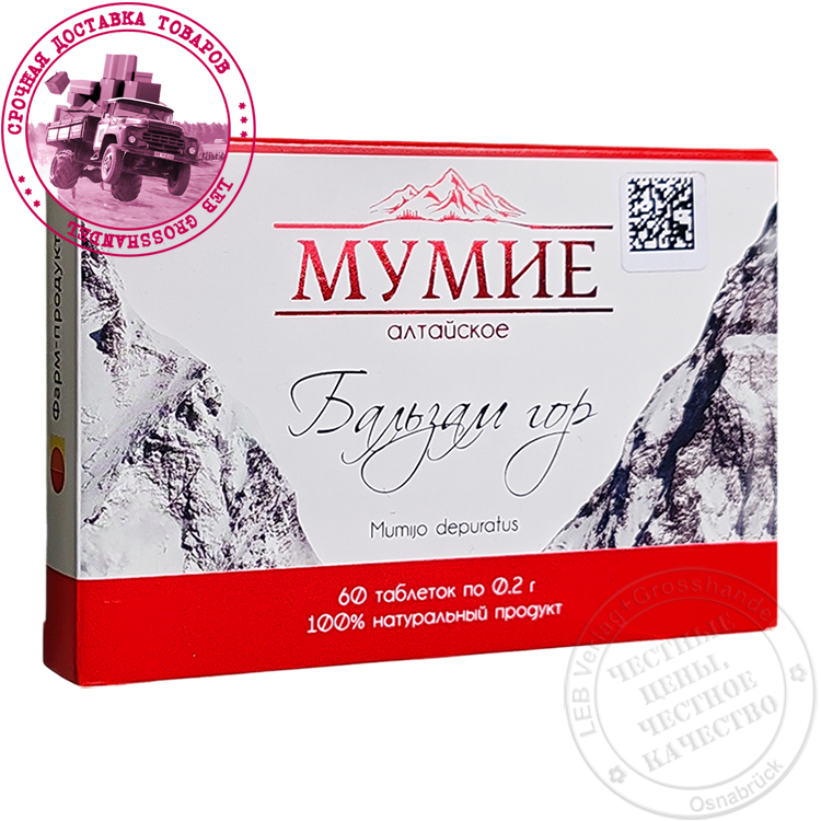 Mumijo, 60 St. x 200 мг В упаковке 60 таблеток по 200 мг.