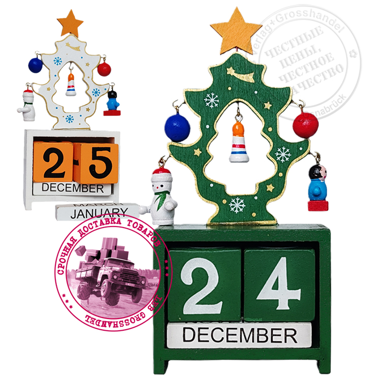 Календарь новогодний с переставляемой датой 7 х14 cm. Дерево