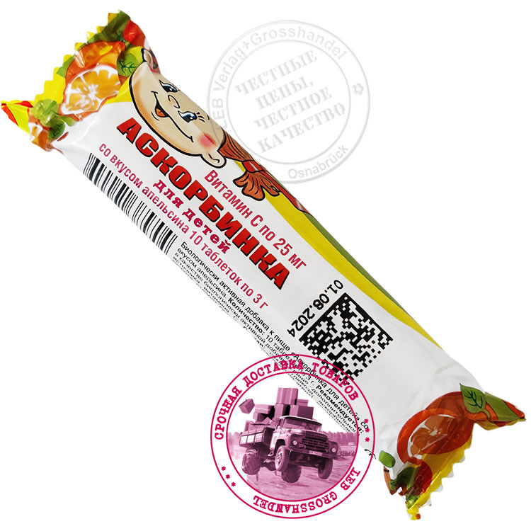 Аскорбинка (витамин С) для детей, со вкусом апельсина N10 x 3 g