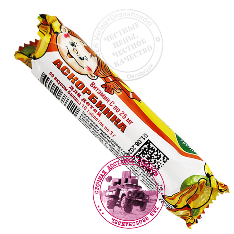 Аскорбинка (витамин С) для детей, со вкусом банана N10 x 3 g