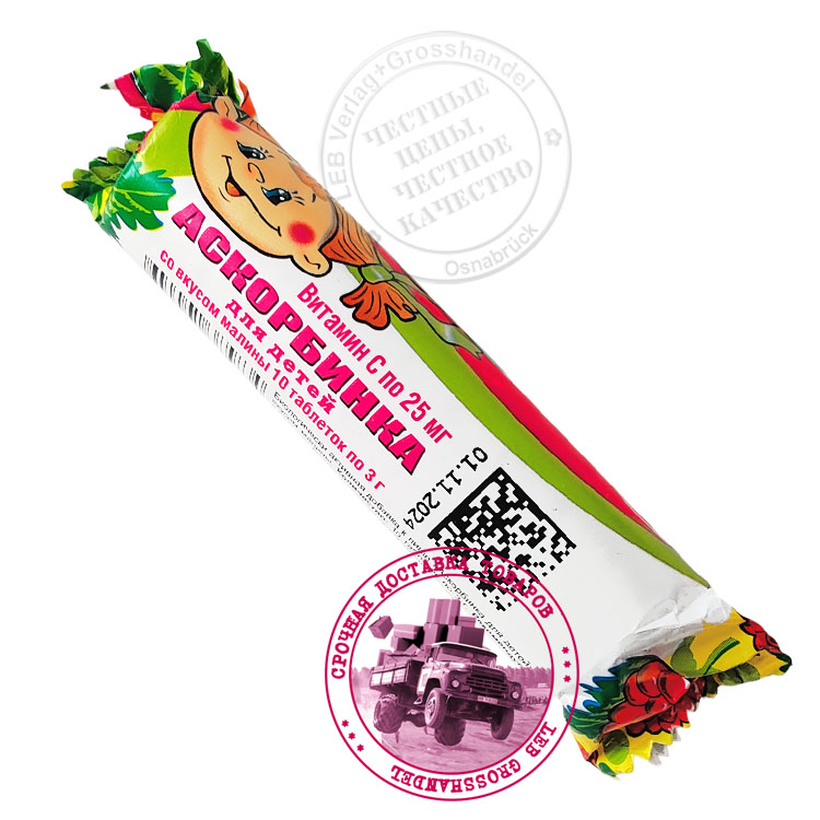 Аскорбинка (витамин С) для детей, со вкусом малины N10 x 3 g