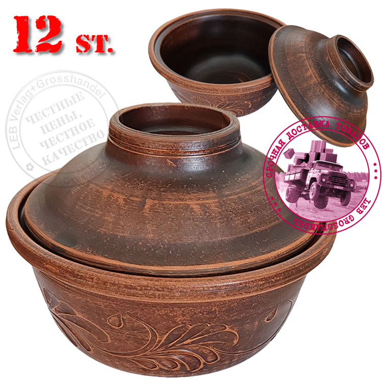Горшочки "Лакомка" красная глина 12 штук (2 комплекта х 6 шт.)